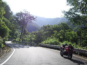 最初の3〜4キロは片側1車線で比較的広い道。