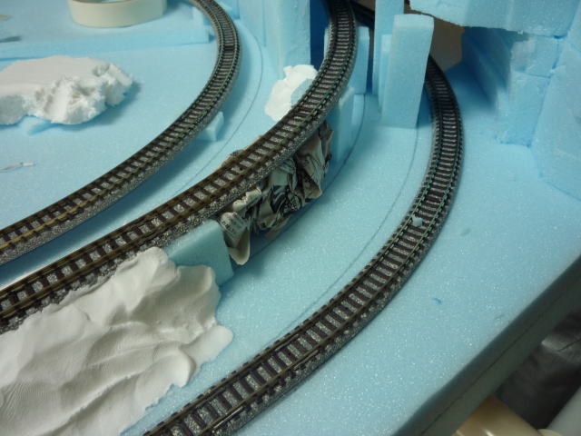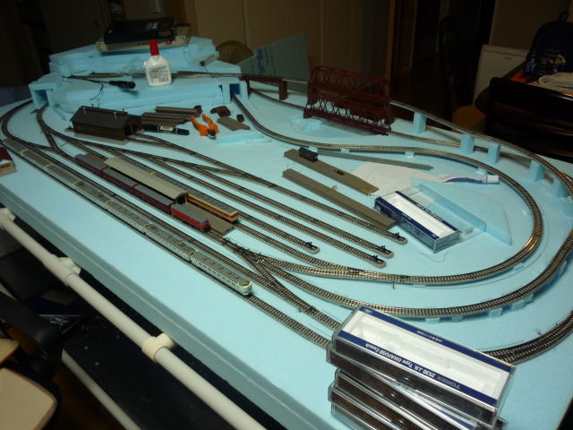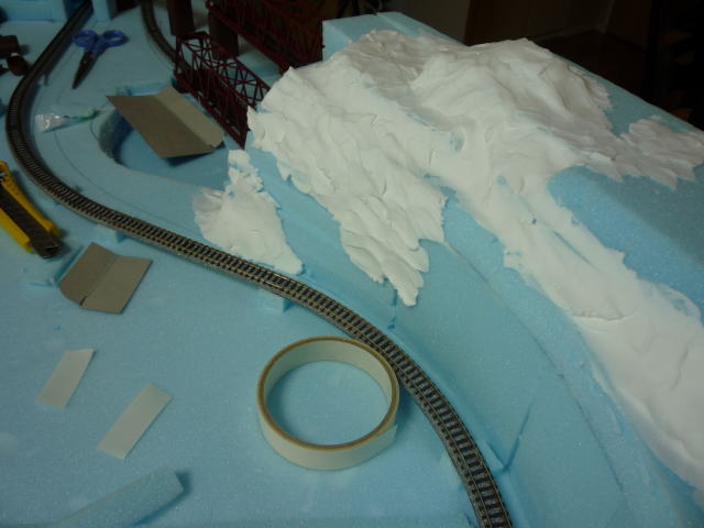 家人がここ2日ほど居ないため、居間へ持ち込んで集中作業。 レールを固定した後、ポイントやフィーダー線を裏面へ引き出した後、接着剤が乾いたのを確認して 改めて手持ちの車両で走行テスト。 ![]() 特に問題は無かったんで、早速地形造形に突入。 ![]() 支線部の勾配は橋脚を使わずに築堤で表現。 スタイロフォームの橋脚を紙粘土で隠していくのだが、橋脚間に丸めた新聞紙を詰め込んで完成時の強度確保。 ![]() 山はスタイロフォームでだいたいの形状を形成し、白い紙粘土でスタイロフォーム同士の隙間を埋め、 基本的な強度を出す。 その後、木粉入り紙粘土を使用し地面を形成。 木粉入り紙粘土は黄土色なんで、追って地面を着色する必要が無いのでとっても便利。 ただし乾燥時間は白い紙粘土の倍くらい掛かってしまいます。 ![]() 紙ねんど調達時に近所のホームセンターで見つけたキッチンワゴン。699円也。 ジャストサイズでゴロゴロ移動できる。高さもちょうど良くて買って正解。 |