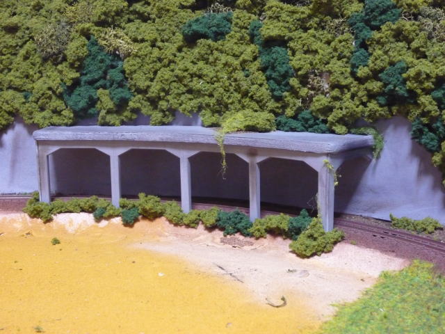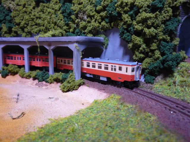 夜な夜な夜更かしをして作業。 内周部分に落石防止シェルターを付けました。 シェルター部はお約束のGM高架下商店を加工。 上面はスチロール板を塗装。 気になる足の部分はフォーリッジクラスターでごまかして フォーリッジを使って「つた」を表現してみました。 R243のカーブなんで車両が通ると外側も内側もかなりギリギリです。 ![]() そんでもって車両を置いてみる。 ![]() それなりに味は出ているんじゃないでしょうか。 良しとしよう。 ↓はこの日現在のレイアウトの姿。 ![]() だいぶできてきたって感じです。 次は周回内部か鉄橋まわりに着手しないといけませんね。 |