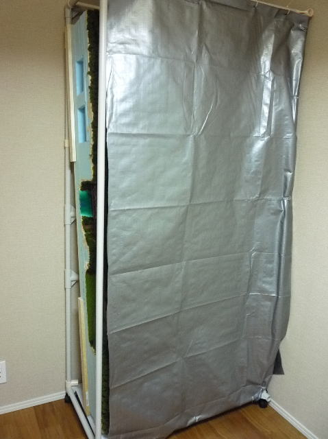 細かい事は色々と残っていますが、とりあえずレイアウト本体(ベース)の仕上げを行います。 これをやってしまえば立てかけて収納が可能になる。 まずは近くのホームセンターで木材を調達。 レイアウトベースにスタイロフォームを使用しているため、やはり少しではあるが持ち上げる際に ベースが少々たわんでしまう。それが原因で線路やシーナリーに影響(破損)が起きるといけないので 木材でスタイロフォームを補強できるような「枠」を作る。 ついでに先日コネクタ化したポイントとフィーダ線をこの枠に固定します。 いきなり完成図w 枠を組み終わって横のまま立てかけた状態です。 ![]() 枠の組み方がお分かりでしょうか。 あくまでも「補強」が目的なので、最低限の材料に留め、定尺をそのまま無加工で使うため上のような組み方になっています。 木材はホワイトポプラ。価格的にSPFの方が圧倒的に安いんですが、今回は重量(軽い)と反りの少なさが重要なので こちらをチョイスしてみました。 まだ配線がゴチャゴチャなので適当に整理してみます。 ![]() はい、完成www いや、自分は見えないところは結構どうでもよくしてしまう性分なもんで・・・ 角材の厚みがある分、スタイロフォーム本体が直接他の部分へ擦れたりすることは無さそうなので やっつけ仕事で処理してしまいました。どーせ見えないしw そして↓がコネクタ部分。 ![]() スタイロフォームをくり抜いて、コネクタのネジ部分からL字アングルを使って木材へタッピングネジで固定。 本多通信工業っちゅー国産高級品(?)のため抜き差しの手ごたえがかなりキツイ感じなので 一応抜き差しのテストも行いましたが問題ナシ♪ せっかくできたんだから と 収納してみる。 ![]() まぁ概ねいいんじゃないでしょうか。 1820x910 の固定式レイアウトが1000x450というコンパクトサイズで収納です♪ |