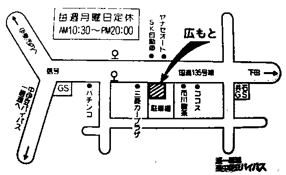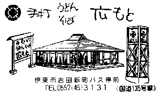 赤地に白字で「伊豆で一番うまい店!」の看板があります。 隣りはお茶屋さんです。「ぐり茶」って看板があります。